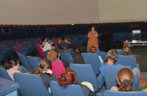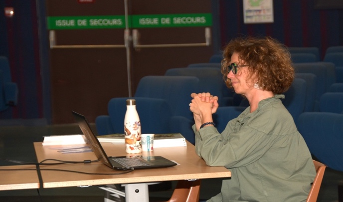 Aux commandes de la projection, Marie-Christine Briatte se tient fin prête